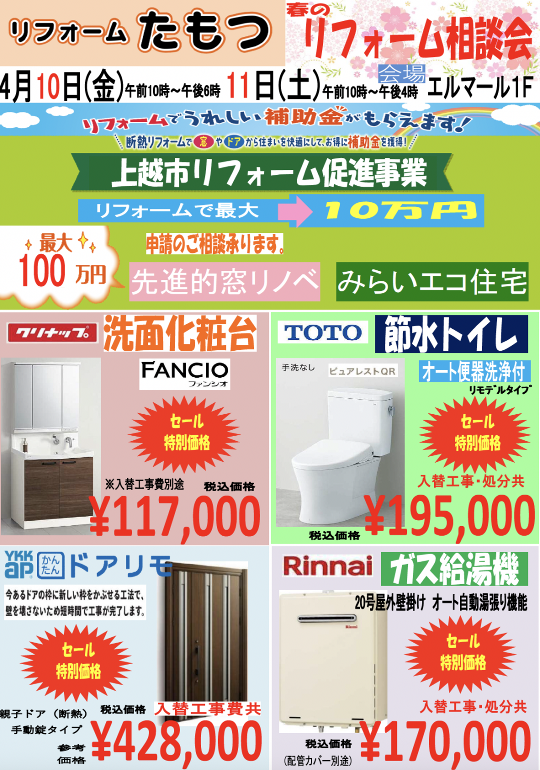 4月10日(金)、11日(土)エルマールでリフォームフェアを開催します!